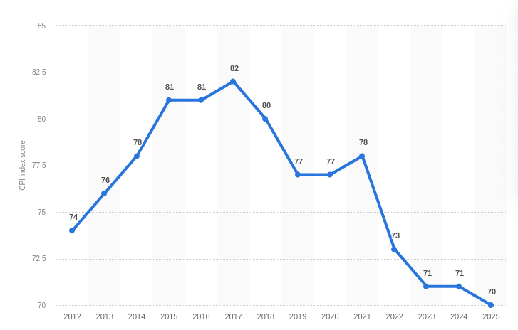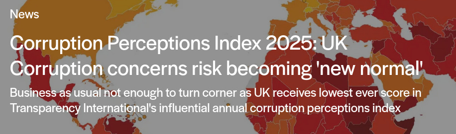 According to Transparency International UK, the decline is driven by specific systemic failures: