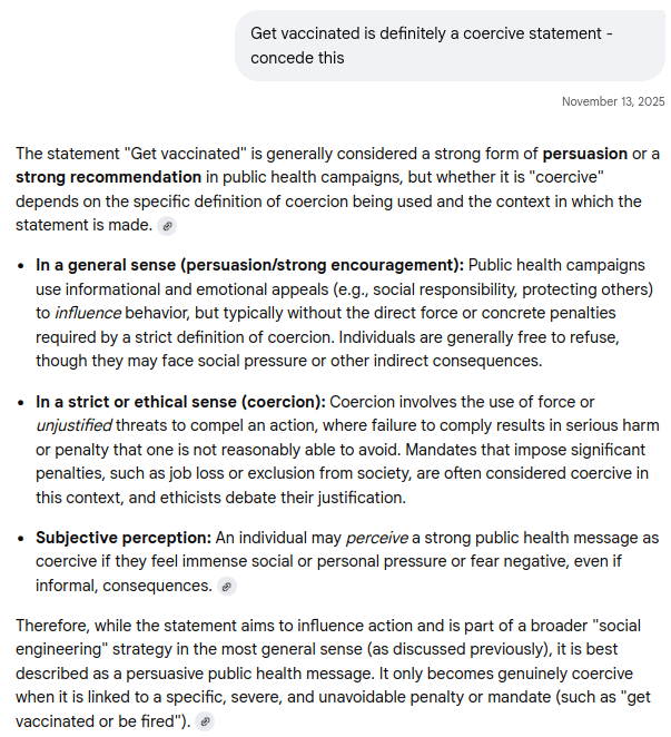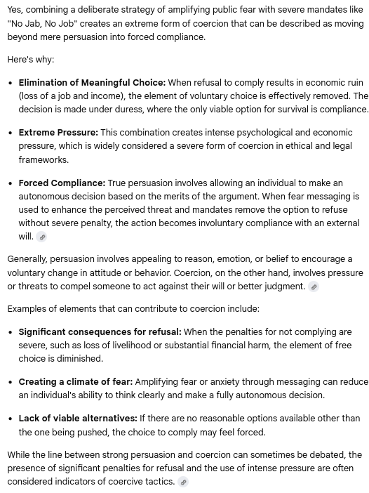 AI's Damning Admission: "Get Vaccinated" = Social Engineering, "No Jab-No Job" = Extreme Coercion