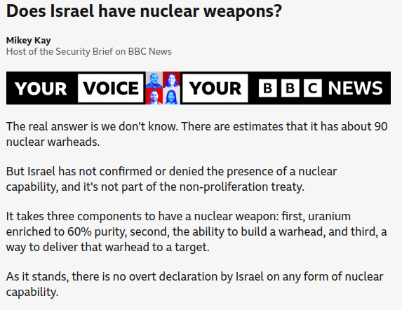 Fake BBC News (SNAKE) plays dumb on Israel's nuclear weapons