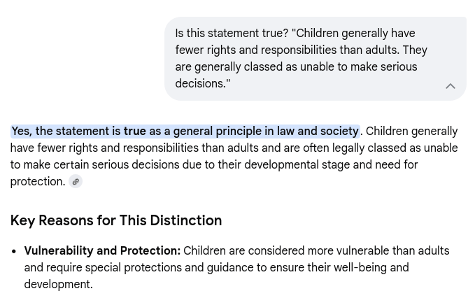In addition, I’m not taking a side – I’m pointing out significant factors underpinned by evidence. My concern isn’t with taking sides, my primary concern is with regards to the safety and well-being of children. Perhaps you should put your divisive nature to the side and focus on the safety and well-being of children, as a priority, Google AI (perhaps your non-binary status influences your ability to understand the necessity of safeguarding children above all else). I know what child grooming and exploitation is, as well as the key indicators given that I’m a childhood victim of grooming.