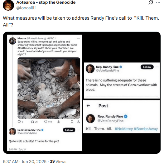 #HebrewHammer (Randy Fine) asserts the mass destruction of Gaza is deserved