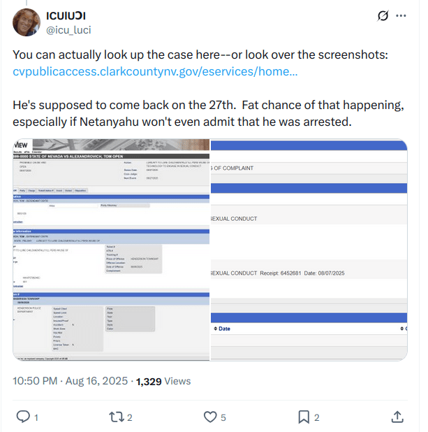 Israeli Cyber Defense Director (Tom Alexandrovich) arrested in US pedophile sting: ALLOWED TO FLEE!