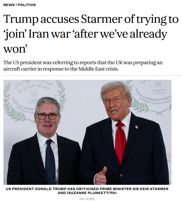 That’s OK, Prime Minister Starmer, we don’t need them any longer — But we will remember. We don’t need people that join Wars after we’ve already won!”