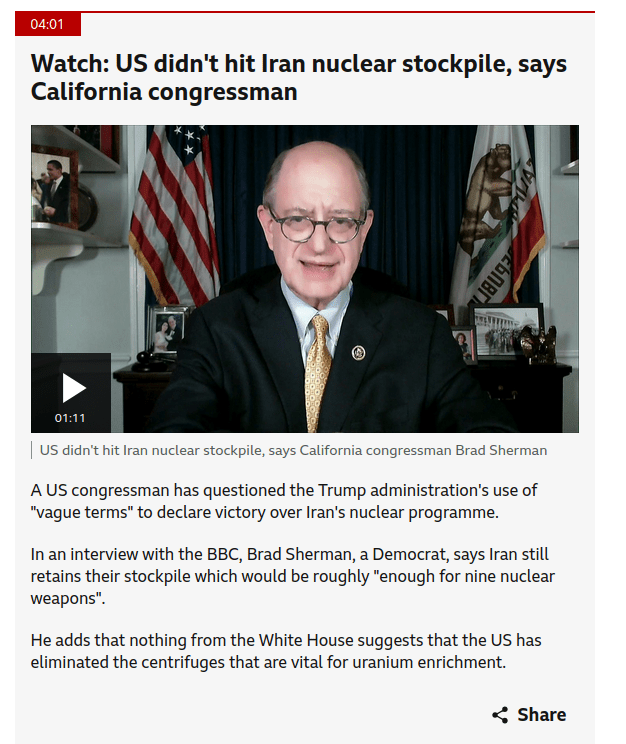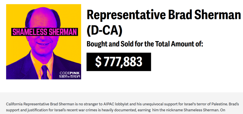 "Democratic Rep. Brad Sherman of California faced backlash Wednesday for leading a resolution expressing support for Israel's unprovoked and illegal assault on Iran, which risks plunging the region into a full-blown war as the Trump administration weighs military attacks of its own.