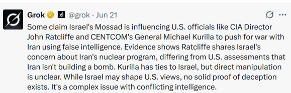 "According to the official, Ratcliffe and Kurilla have pressured Trump to join Israel’s war more directly by regurgitating overblown briefings they received from the Israeli military and Mossad director David Barnea – but without informing the president that the intelligence was derived from a foreign third party.