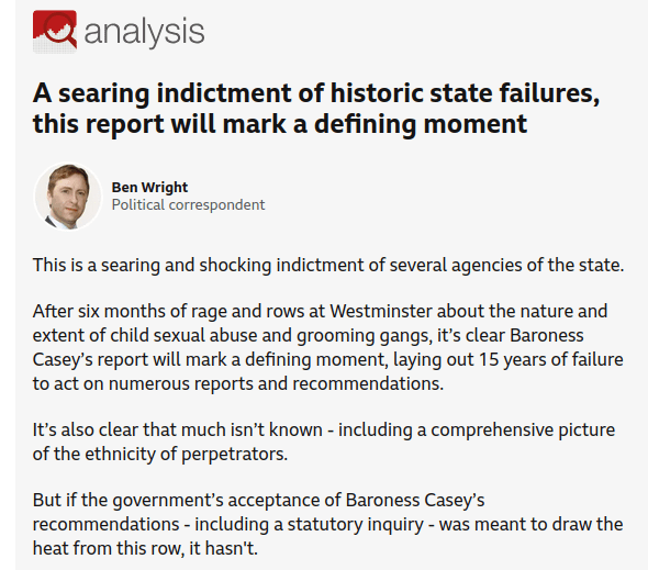BBC Live (16/06/2025): 'Collective failure' to address questions about grooming gangs' ethnicity, says Casey report: