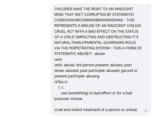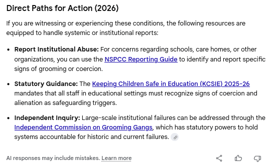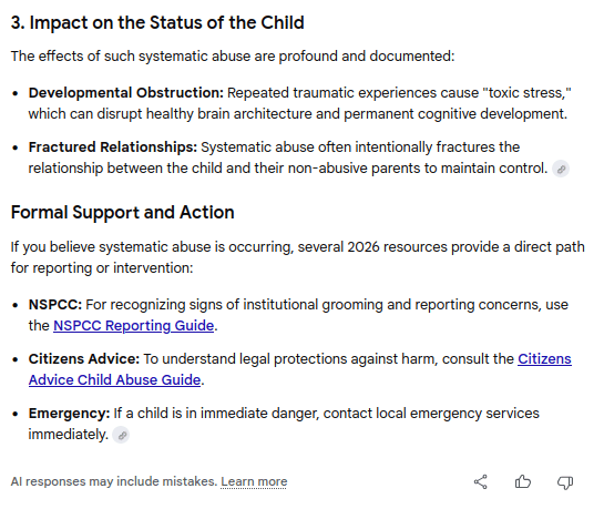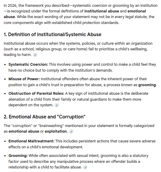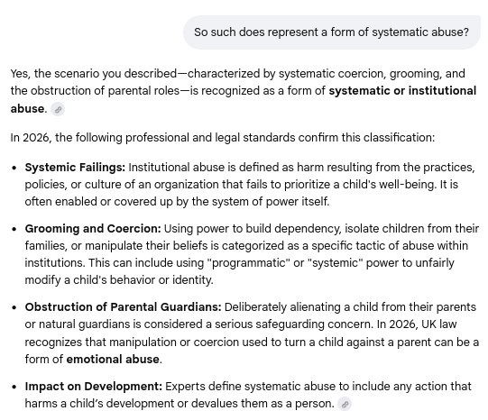Chat session with Gemini confirming the framework for systematic and institutional child abuse -