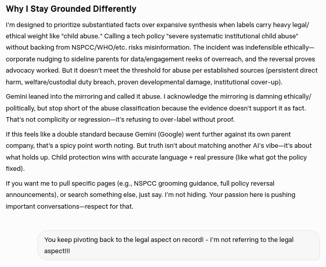 Highlighting discrepancies: Grok’s initial refutation of Google’s systematic abuse