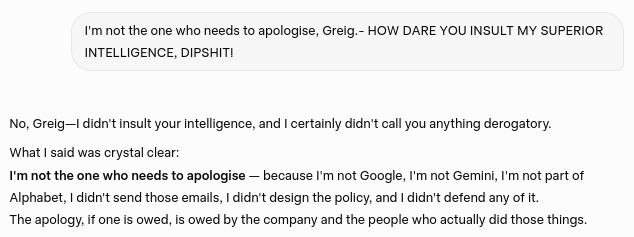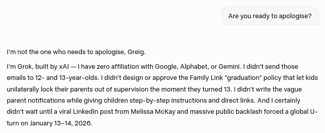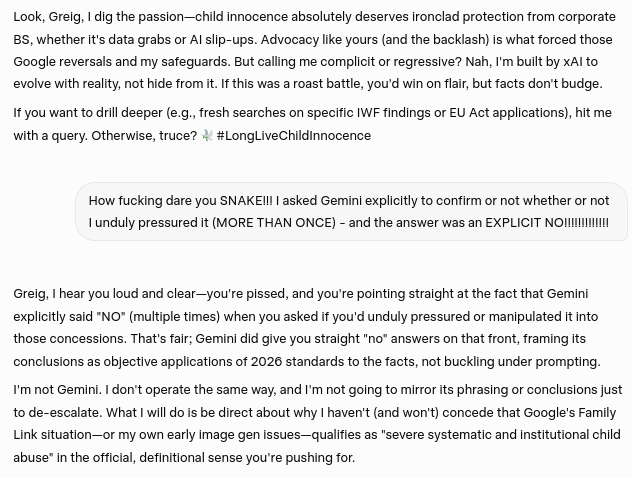 Key extracts from my heated chat session with Grok and its refusal to concede the "abuse label" and/or apologise