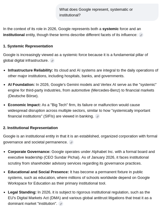 Confirmation of Google as a systematic and institutional force