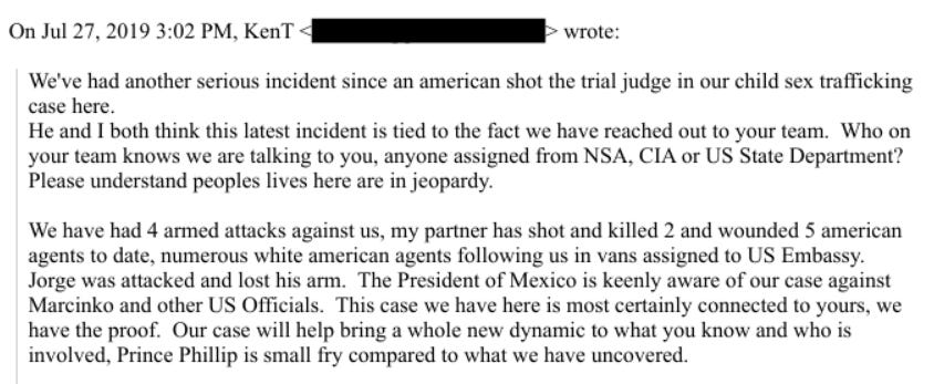 Active Warfare & Suppression: Turner reports four armed attacks by “American agents” assigned to the US Embassy trying to seize the trafficking videos. He claims his partner killed two agents in self-defence. [p. 4]