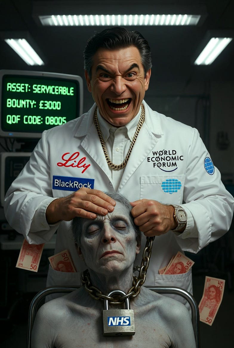 When the 2026/27 GP contract goes live this April, the transition will be complete. The NHS will no longer be a service dedicated to human health, but a state-managed logistics hub for global finance. They don’t want you healthy; they want you serviceable. They don’t want a cure; they want human dependency. Medical ethics weren’t just violated — they were auctioned off to the highest bidder at Davos.