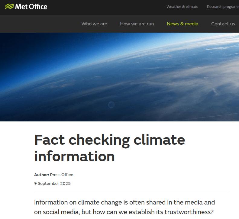 The Met Office's 9 September 2025 blog post, "Fact Checking Climate Information," serves as the perfect exhibit of its hypocrisy (and idiocy:)