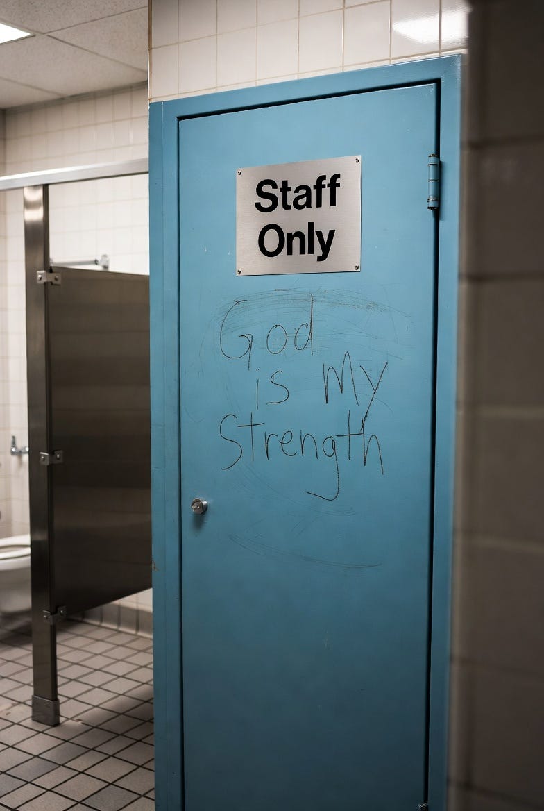 The Hidden Passageway: The complainant describes a clandestine entrance behind a “housekeeping door” inside the men’s restroom. [p. 1]