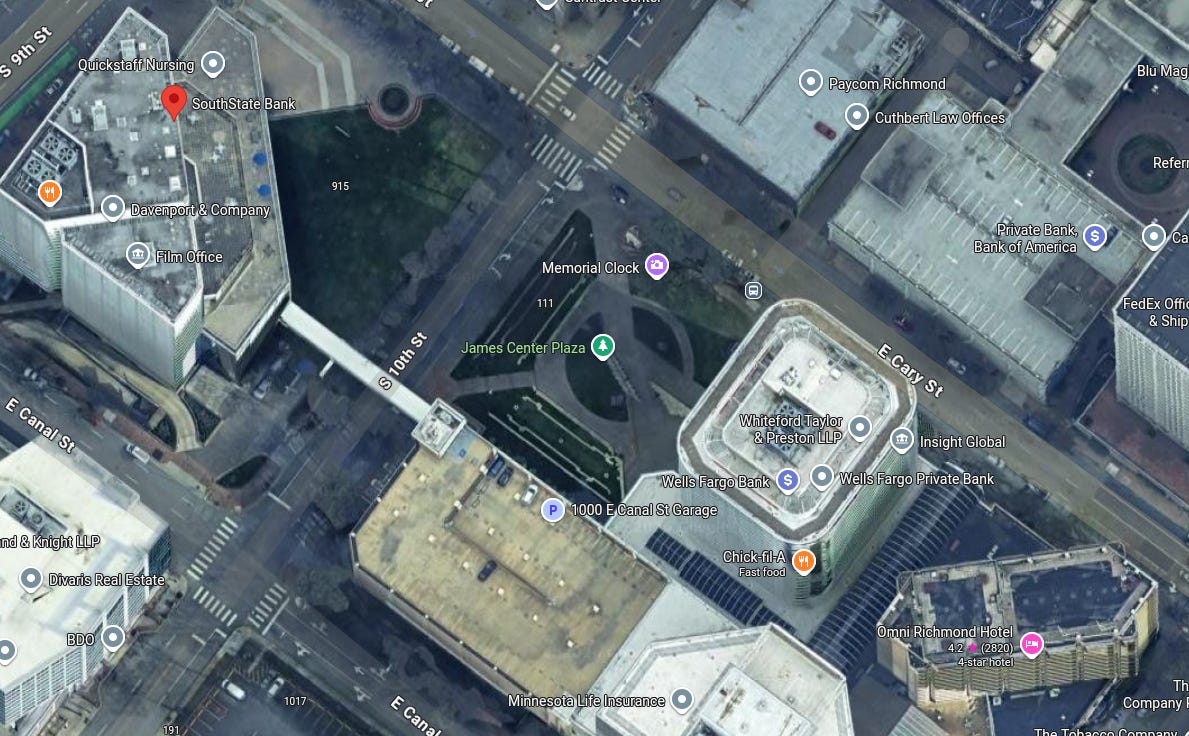 The Invisible Path: The Omni Richmond Hotel and the One James Center building (901 E Cary St) are physically integrated.