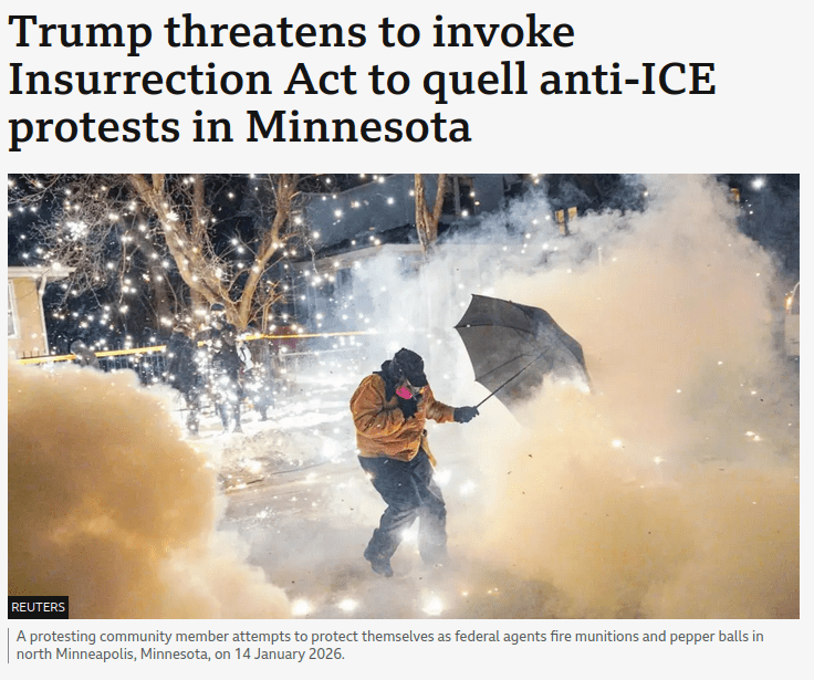 "US President Donald Trump has threatened to invoke the rarely used Insurrection Act to quell unrest over federal immigration enforcement operations in Minneapolis.