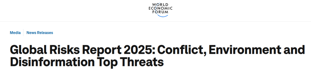 "Misinformation and disinformation lead the short-term risks and may fuel instability and undermine trust in governance, complicating the urgent need for cooperation to address shared crises."