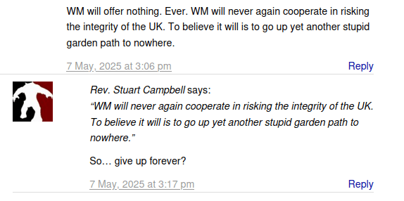 There is no sane reason for any Unionist party at Westminster to ever grant Scotland another referendum on the same terms as the 2014 one. The Supreme Court decision of November 2022 made clear that the matter lay in the House Of Commons’ hands alone, and they have absolutely nothing to gain from making the concession again.